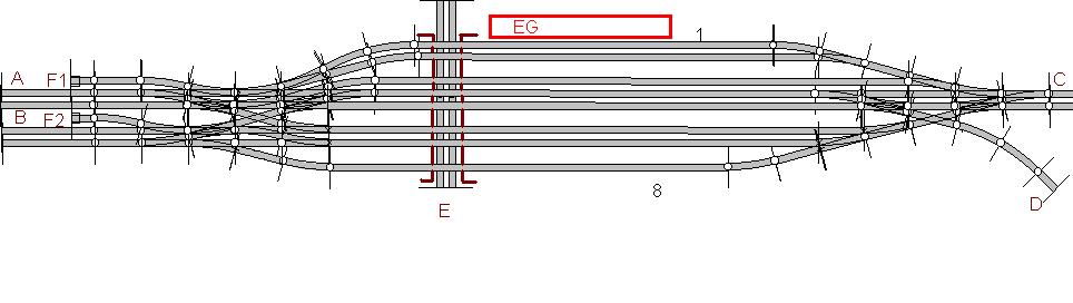 Material: 9x Weiche 4x DKW 2x Kreuzung über 50 Einspeisungen |