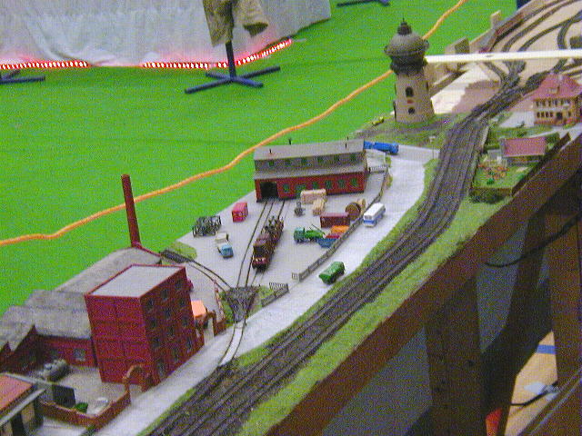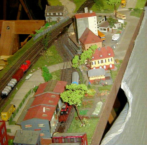 Das 3. Gleis auf der rechten Seite (neben der Industriestraße) führt auf dem 2. Industrieteil (oben) zur Maschienenfabrik und der Verladeanlage.