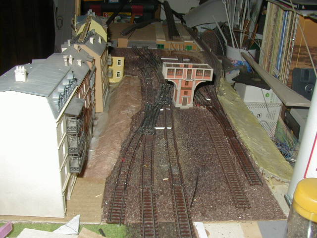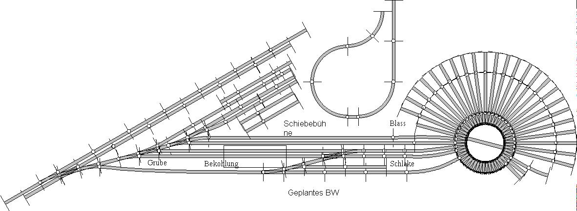 Dann das BW-Gleis und die Hauptstrecke 1, in der mitte das Pilzstellwerk der Einfahrt und rechts die