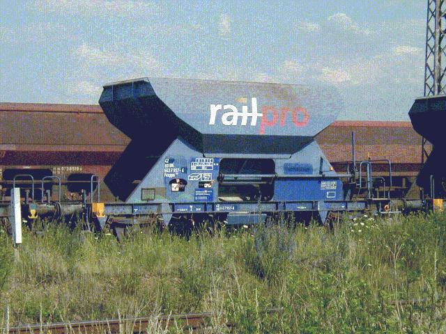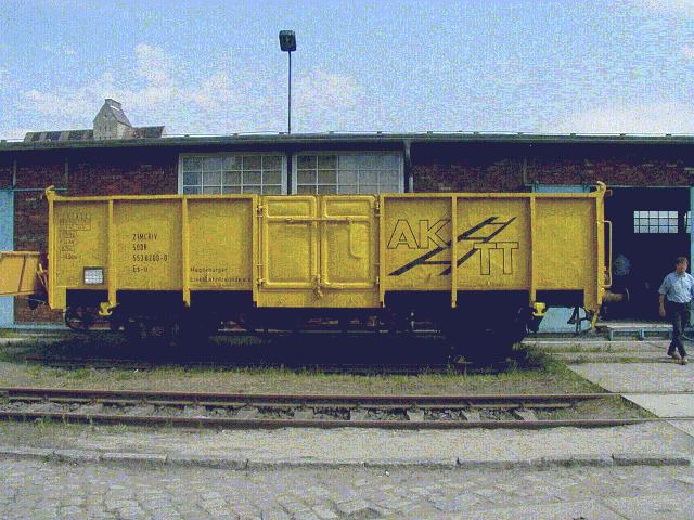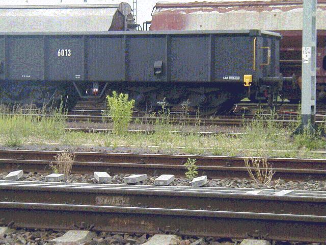 Diesen 4-achsigen offenden Güterwagen habe ich auf einem Gleis des Rangierbahnhofs Magdeburg Rothensee gesehen. |