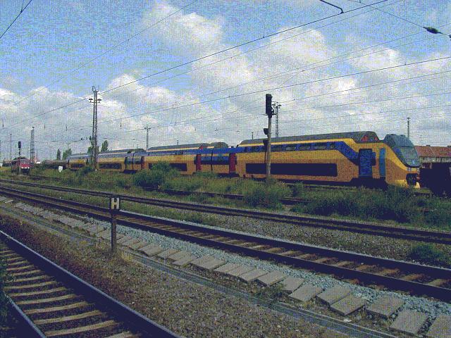 Auch diesen halbfertigen Doppelstockzug habe ich auf einem Gleis des Rangierbahnhofs Magdeburg Rothensee gesehen. |