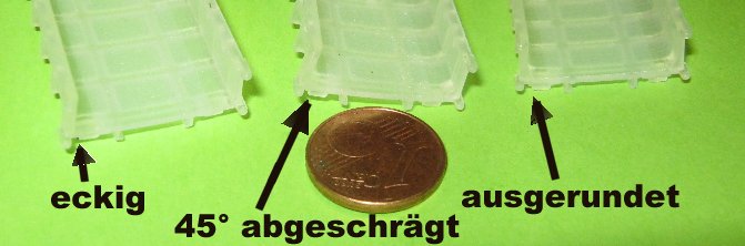 Dies sind die ersten Abrollmulden. zZ. sind 3 Formversionen möglich. (Unterkante eckig, rund und 45° abgeschrägt.