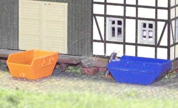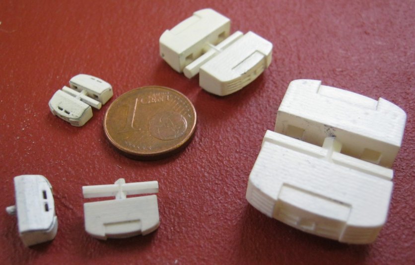 Bausatz Wasserwagen datenanzeige A Aus dem geplanten Umbahsatz für den N-Skoda von Permo ist nun ein Komplettbausatz entstanden. Er besteht aus 3D-Druchteilen, Ätzteile und Fensterfolie.Bausatz Müllwagen 64 datenanzeige A Auch dieser Kompletbausatz besteht aus 3D-Druckteilen, Ätzteilen und Fensterfolie. Das Kühlergrill ist in 2 Versionen bei. Auch Figuren sind im Bausatz enthalten. Die Heckklappe kann auch offen Montiert werden so das das entladen der Müllsammeltrommel dargestellt werden kann. Selbstverständlich ist darum auch die Müllsammeltrommel nachgebildet. Es ist die Version für runde Mülltonnen wie sie ab 1964 zum Einsatz kam.Müllcontainer datenanzeige A 2 Müllcontainer wie sie in den 70ern in den Plattenbaugebieten typisch waren. Später wurden sie als Futtersammelkübel und als Streusandbehälter genutzt. Einen habe ich noch 2007 am Dessauer Bahnhof stehen gesehen. 1. Muster im 3D-Druck Sattelkupplung datenanzeige A LKW-Sattelkupplung zum Bau eigener Sattelzugmaschinen.Kühlaggregat datenanzeige A 2 moderne Kühlaggregate zum Selbstbau von Kühl-LKW´s, Kühlauflieger oder Kühlwechselbrücken.